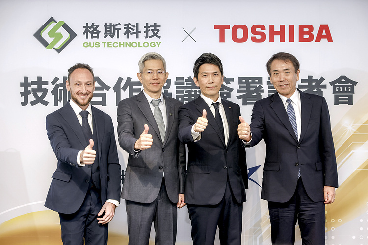 ![]() ▲格斯科技總經理葉國偉(左)與東芝電池事業部事業部長高岡聰彥,完成簽訂技術合作協議。格斯將結合多年累積製造電池的深厚經驗,透過東芝擅長的先進材料及技術優勢,在在巴西礦業公司 (CBMM)及其綜合商社雙日(Sojitz)支持下,打造兼具高性能、高安全性和價格競爭力的新一代電池。 ![]() ▲(左起)CBMM總經理Fabio D'Aiuto、格斯科技總經理葉國偉、東芝電池事業部事業部長高岡聰彥、台灣双日股份董事長徳元克好共同出席簽約儀式。