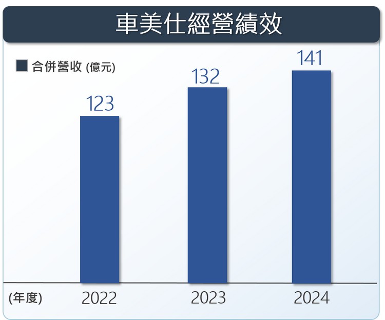 回顧2024年,車美仕在穩固台灣市場的同時,積極拓展海外市場,中東、東南亞等海外據點在2024年皆擴大營運規模,去年海外市場的營收超過40億,較前一年度成長10%。