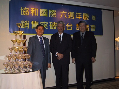 ![]() ▲協和國際胡匡瑞董事長、駐台顧問團團長Alain、副總經理宗緒福(由左至右)在銷售通路的人才培育方面,協和國際不但首創業界配置予旗下全省業務人員人手一台智慧型PDA,跳脫傳統受制於平面型錄和汽車靜態展示的銷售方式,隨時隨地均可下載汽車的最新資訊予顧客,也可以立即補充最新知識,提昇業務人員本身的專業識能。為了進一步激勵表現優異的業務人員、培養業務人才並傳承良好的銷售經驗,協和國際特別提供四部PEUGEOT新車予2001年全省銷售前四名的績優業務人員,以激勵業務人員的服務水準與士氣。協和國際希望透過對TOP SALES的獎勵,帶動全體銷售人員的良性互動,同時激勵高昂的銷售士氣與良好的銷售品質,並透過優質的人與環境,提供消費者一個優質的購車經驗。