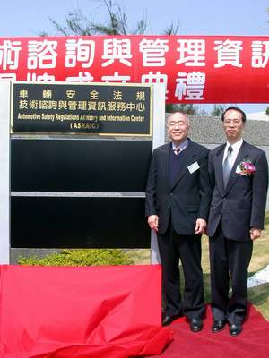 交通部為有效地提升車輛業者與民眾對車輛安全法規的瞭解以及提供專業級之顧問服務,設立「車輛安全法規技術諮詢與管理資訊服務中心」(簡稱車安諮管中心,英文簡稱為ASRAIC),並於3月14日假彰化縣彰濱工業區之財團法人車輛研究測試中心(簡稱車輛中心)舉行揭牌典禮,同時邀請政府機關代表及車輛產業貴賓與會,由交通部路政司尹承蓬副司長及車輛中心吳海董事長共同主持揭牌儀式,宣告車安諮管中心正式成立。
