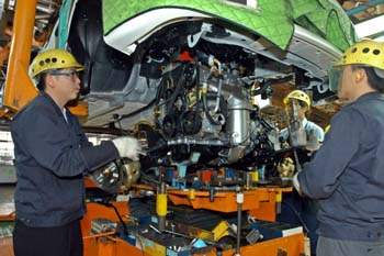 所有廠內生產的車輛零件及引擎最後都將送至裝配廠做組裝及最後測試,組裝過程中採用同步化物料供應系統及紅黃燈及時呼援系統,確保生產線物流順暢、零欠品,減少等待零件或是取料走動而造成的人力浪費,並利用防呆裝置預防裝配失誤,種種嚴謹中兼具便利的設計將生產效率提昇至最高。