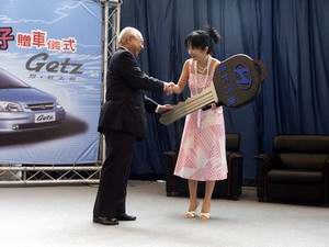 三月底Getz在台上市的發表會上,三陽工業董事長黃世惠非常慷慨地送了會場主持人陶晶瑩一輛Getz,今日的贈車儀式中,陶晶瑩表示將以網路拍賣的方式將這輛車捐贈出去。