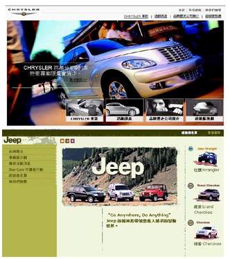 全新改版的Chrysler & Jeep網站配合戴姆勒克萊斯勒(DaimlerChrysler)原廠的全球化網站規格,終於於日前完備上線。全新風貌與氣象的設計,讓Chrysler與Jeep展現全球一致的品牌形象,也讓喜愛Chrysler 與Jeep產品的車迷朋友們,透過先進便利的線上服務系統,與全球的Chrysler & Jeep車迷同步即時掌握Chrysler與Jeep的最新訊息。