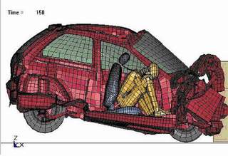 ![]() ▲前方正面碰撞模擬CAE分析車輛研究測試中心總經理黃隆洲也在會中強調:近年來,我國汽車工業無論在適地化之改型設計,或是零組件優化方面都有顯著的進步,整車方面已經少量批次外銷大陸、東南亞、印度等市場,有些車廠的設計甚至已經在大陸設廠生產,獲得熱銷。零組件則以OEM或售服(AM)件方式銷往歐美,賺取大量外匯。有的車廠研發中心甚至負責日本原廠在東南亞市場車型之委託設計,這都必須一再證明自己的設計具有高度的安全與考靠性才行。車輛中心負責規劃興建之實車碰撞實驗室,將具備前、側、後面碰撞與動態翻滾等研測技術,只要結合今年由車輛中心號召15機構組成之CAE研發聯盟所提供之電腦數值模擬分析技術,即可提供完善的設計、分析與檢測一條鞭的服務(如附圖),不但可望大幅減少國產車廠往返國外測試所需耗費的時間與成本,更可提昇車輛產業自主研發能力,進軍廣大國際市場。