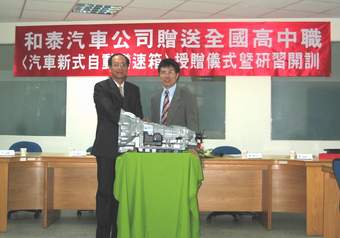 ![]() 和泰汽車公司張明杰協理在致詞時表示:『和泰汽車公司長年來,一直致力提供高品質產品與最佳的服務來滿足消費大眾,同時也深深以「企業公民」自許,並秉持「取之社會,用之社會」之精神,致力於從事回饋社會公益活動,多年來甚獲社會大眾的肯定與好評。本次和泰汽車基於教育應與實際接軌的想法,特提供目前最新先進的變速箱教材供各職校教學使用,以落實學以致用的理想,同時,也希望能進一步提昇國內職業教育技能及水準』。