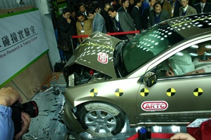 各界期待已久,由經濟部技術處科技專案支持建構之全國首座國際級實車碰撞實驗室1月14日於彰濱工業區財團法人車輛研究測試中心正式啟用!行政院游錫堃院長蒞臨主持開幕啟用儀式,現場並成功執行全國首次的實車撞擊測試。此實驗室之落成啟用象徵我國汽車產業技術與國際同步,也是台灣邁向成為亞太地區研發及高附加價值零組件供應基地願景之具體作為,相信能落實車輛產業根留台灣,產品行銷國際的目標。儀式現場同時邀請到包括經濟部長何美玥、車輛工業同業公會理事長嚴凱泰、彰化縣縣長翁金珠、工研院林信義董事長、工業局陳昭義局長與主管科技研發之黃重球處長及國內外各大車廠高階主管等各界貴賓出席盛會,共同見證台灣汽車發展史上歷史性的一刻。