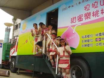 為了協助拉拉山種植水蜜桃的原住民果農家庭有更穩定的經濟收入,長期關懷原住民族群的中華汽車原住民文教基金會,今年特別規劃『甜蜜樂桃桃計劃』,與中原大學資訊管理學系合作,協助桃園縣政府行銷拉拉山水蜜桃。繼6月初展開首波「幸福樹認養」活動,獲得熱烈迴響後,隨著水蜜桃季的展開,中華汽車藉由改裝行動車的概念,結合水蜜桃的元素打造出「全台第一輛行動水蜜桃餐廳」----「甜蜜樂桃桃專車」,並於6/22(三)桃園縣拉拉山水蜜桃季記者會中首次揭幕公開,未來將陸續安排至各地風景區展售,希望藉由一連串的行銷活動,讓拉拉山水蜜桃的甜味,隨著水蜜桃專車散播到全省各地!