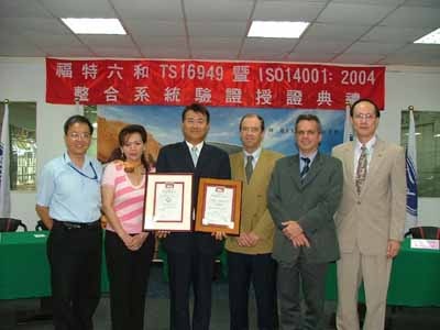 福特六和於2005年4月率先通過稽核,成為國內第一家整合TS16949:2002及ISO14001:2004兩大系統並通過認證的中心車廠,今日正式接受國際權威認證單位BVQI授證,並準備整車外銷進軍國際市場,再度展現世界級品質與環保領先優勢
