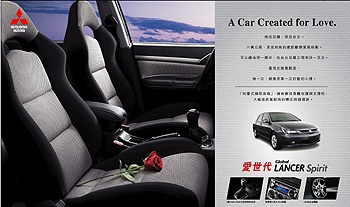 ![]() 配合GLOBAL LANCER「愛世代」系列廣告,中華三菱推出GLOBAL LANCER全車系47.9萬元起,搭配40萬30期0利率的優惠方案,此外,也特別推出「GLOBAL LANCER 賞車有獎 Free1網路電話輕鬆講」活動,即日起至4月底前至中華三菱全省展示中心賞車,即可獲得Free1網路電話折價券一張,憑券上優惠購物密碼至PC HOME購物網站購物專區登錄密碼後,即可以新台幣499元購得白色Free1網路電話一支(原價899,內含30分鐘點數儲值卡)。中華三菱要讓「愛世代」的你與「小情人」或是「遠距離的她」情話綿綿,愛無界限!