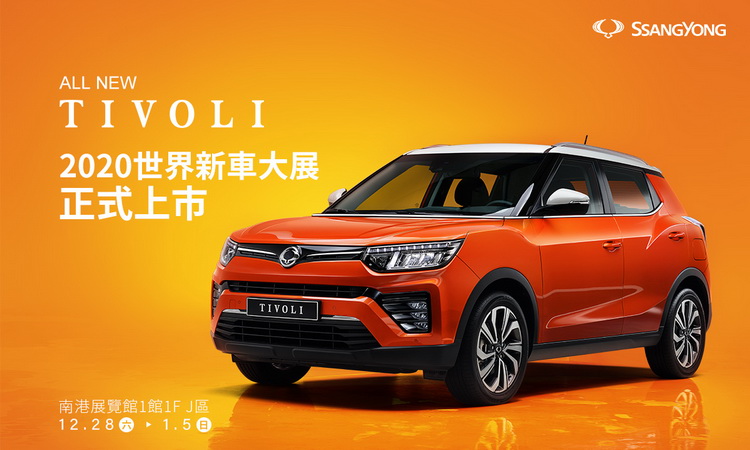 SsangYong台灣總代理永嘉雙龍汽車,即將於2020世界新車大展期間(12月28日~1月5日),以「時尚越野,極智未來」為主題,由國內首度亮相登場的全新改款《TIVOLI》跨界都會休旅領軍全新品牌車款陣容現身亮相於南港展覽館一樓展區,展區採用未來都會搭配霓虹燈光元素,獻給現場參觀車迷時尚、創新的觀展體驗。