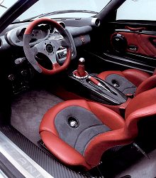 ![]() C12前後懸吊是鋁合金製造,結構則是運動化雙A臂配置,為了適應高速穩定狀態,在研發過程中也進行無數次風洞測試,以求取最佳風阻係數。此外後保險桿和車體組件亦是採用輕量化碳纖維材料,運用義大利Modena設計中心之知識技術,有賴其長期開發賽車之專業經驗,研究小組即針對使用碳纖維材料於車輛的保護能力,直線撞擊測試安全性;進行輻射線和高溫測試C12耐熱性,也成為研究開發這輛超級跑車的重要程序。儘管是輛熱血沸騰的超級跑車,不過在內裝格局上C12座艙內亦充斥了真皮材質,另加上了大量鋁合金、碳纖維材料綴飾,使車內保有高貴質感和科技觀。