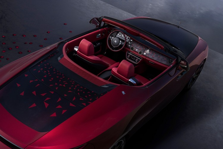 勞斯萊斯Droptail首款作品La Rose Noire是一款前衛大膽、誇張而深邃的專屬全車體客製化傑作。La Rose Noire的靈感汲取於巴卡拉黑玫瑰的迷人魅力,這種質感濃郁如天鵝絨般的花朵產自於法國,深受客戶母親的喜愛。巴卡拉黑玫瑰花瓣呈深石榴色,色調近似黑色,但在光線直射下,深色花瓣表面會呈現出紅色的珠光光澤。這兩種顏色構成了的La Rose Noire主色調:奪目耀眼的紅色被命名為「真愛」,表達了客戶希望寄託於此的浪漫情懷。