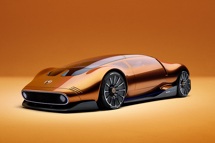 Mercedes-Benz 發表全新電動概念超跑 Vision One-Eleven,設計語彙融合未來與復古元素,承襲傳奇 C 111 創新實驗精神,動力系統以創新 YASA 軸向磁通電動馬達(axial- flux motor)為核心,並借鑑 F1液冷圓柱電池技術,且擁有品牌首款導入「起居室空間」概念設計的內裝。