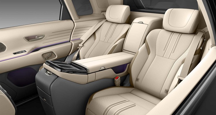 後座買家車定位就必須用高標準來檢視車室表現,首先打開後車門,可發現能開啟75度的後車門,乘坐者可透過電動伸縮踏板和把手輕易登車,後牌為兩張獨立座椅,透過扶手的控制面板能調整座椅腳步、按摩功能以及空調等功能,就與LM或者Alphard後排座椅相同,座椅角度能完全倒平取得最舒適姿勢。後座乘客還擁有專屬11.6吋螢幕、小冰箱、氣氛燈、全景天窗等。另外,原廠針對隔音下足功夫,在車身輪弧內、車底、玻璃等都加強隔音材質鋪設。