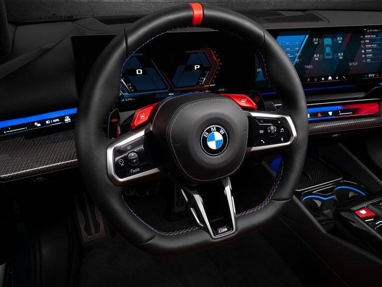 在底盤操控上,新M5懸吊為取前:雙A臂、後:五連桿設定,懸吊結構中有眾多經過專門調整的組件;配備 M Servotronic車速感應式動力方向盤確保優異的路感回饋與轉向精準度;同樣列為標配的可調式懸吊具備電子避震器與整合式後輪主動轉向系統,可讓後輪最多轉向至1.5度。標配的M複合煞車系統與選配的M碳纖陶瓷煞車都與整合式煞車系統結合,提供車主兩種不同的踏板力道回饋。前20吋、後21吋的M輕鋁合金輪圈也列為標配。