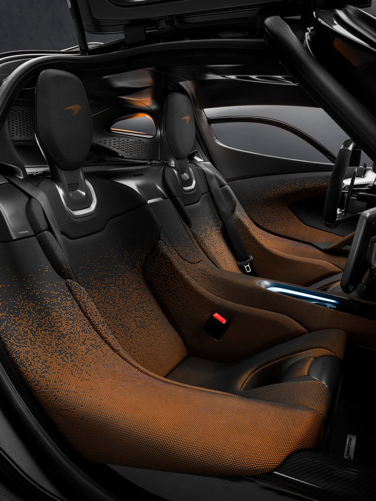 W1目前首波將生產399輛,其客製化部門也宣稱可提供無限的個人客製化服務,像是一系列豪華和創新的內裝材質,例如首次使用的McLaren InnoKnit,這是一種無限靈活且超輕的材料,專為無縫整合內飾表面和組件所開發,經過針織貼合,可免除任何浪費的切割或縫紉要求。
