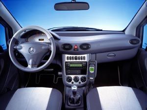 ![]() ▲A210 Evolution標準的內裝佈設,冷色調的配色給人一種高科技的未來感。同時有短軸與長軸兩種車體型式可選,A210 Evolution所搭載的動力系統是一具由AMG特別調整的2.1升直四引擎,擁有140hp/5500rpm的最大馬力與20.9kgm/4000rpm的最大扭力,搭配五速手排變速箱,A210擁有8.2秒由靜止加速到100km/h的成績,並且達到203km/h的極速。平均油耗12.7km/L,A210 Evolution的排污完全符合在2005年時將要施行的EU-4嚴格環保法規。配合性能的提升,A210使用了係數重設過的懸吊阻尼與彈簧,與特殊版的後懸防傾桿,為了提升制動系統的效能,除了四輪都是碟煞設定外,A210 Evolution還使用了AMG特製的前打孔通風碟。