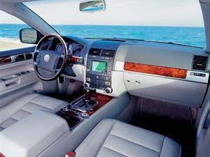 ![]() ▲名列VW新一代的豪華車陣線之第三彈,Touareg有著水準比照旗艦Phaeton的車內佈設,以便和一干早已盤據住LSUV市場的頑強對手對抗。新車款在德國上市的初期,將暫時有兩款不同的動力配置可以選擇,分別為3.2升排氣量的汽油V6,與一具號稱乘用車史上迄今最大、排氣量5.0升的TDI柴油渦輪V10引擎。其中已廣為運用在VW/AUDI家族內的3.2升V6擁有220hp的最大馬力與31.1kgm的最大扭力表現,但最令人注目的,卻恐怕還是TDI車款上那具5.0升、雙渦輪增壓的V10,擁有313hp的最大馬力與高達76.5kgm/1800rpm的超驚人扭力輸出。而隨後加入這兩具引擎行列的,則還有一具新開發的2.5升TDI柴油渦輪直五,與一具4.2升的汽油V8引擎。Touareg全車系皆配置六前速的變速系統,但是自排還是手排,則得根據引擎款式來決定,自排系統擁有車廠稱為DSP(動態換檔程式)的智慧型學習功能與Tiptronic手動換檔能力,如果車主選用了額外的方向盤控制系統,還可利用方向盤上的撥桿進行檔位的選擇。
