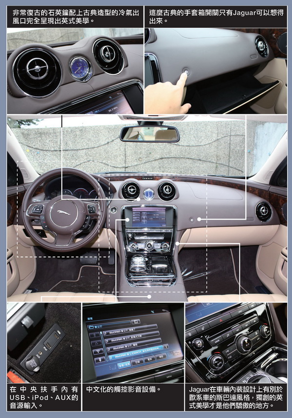 實際體驗見真章標準軸距的XJ雖然縮短了軸距但車身尺寸依舊看起來宏觀,對於他自駕的操控表現不抱甚麼太大期望,但公關強調這是一輛針對自駕消費者的XJ,還是要來測測他有何改變、增加多少自駕樂趣。從閘道進入環東大道,平順、漸進踩下油門,雙模式增壓系統的柴油引擎動力輸出很線性,沒有渦輪突然開起的那種貼背感,也感受不到底轉速的渦輪遲滯,這就是豪華房車該有的舒適度加速感受。 ![]() ▲Jaguar的座艙設計少了德國的斯巴達氛圍,多了英國古典美學的美感。![]() ▲小適中的方向盤附有換檔撥片,左右兩邊還有影音介面控制鍵、儀表板功能控制鍵、免持電話系統、定速巡航以及方向盤加熱按鈕。![]() ▲旋鈕式的排檔方式已經成為Jaguar的標準配備,初次使用的消費者需要花點時間適應。![]() ▲天窗不是常常會用到,但如果需要時卻沒有會讓人心情不美麗,有備無患算是好事。![]() ▲XJ的座椅柔軟有點像坐在自家客廳的沙發上,但在激烈駕駛時包覆性稍嫌不夠。![]() ▲軸距縮短後的標轉版XJ依舊還是有超過3米的軸距,後座乘客的膝部空間保有一定的水準。