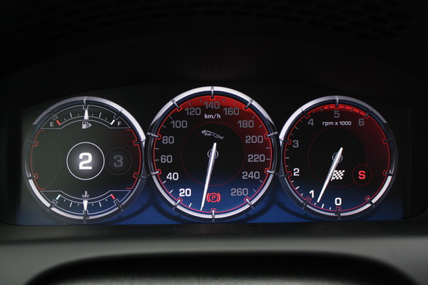 ![]() ▲進入Sport模式後,儀表板會從藍光變為紅光,如果使用手動換檔模式,最左邊會大大的顯示目前檔位。![]() ▲當需要調整車輛設定時,最右邊的轉速表會跳出選單,這就是數位儀表板的好處,想要怎樣顯示都可以經由程式修改。![]() ▲10. 數位化的儀表板非常有特色,不知道能不能像iPhone一樣,破解後可以顯示自己想要的樣式。