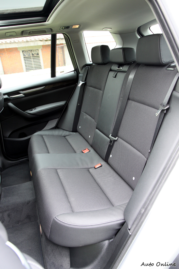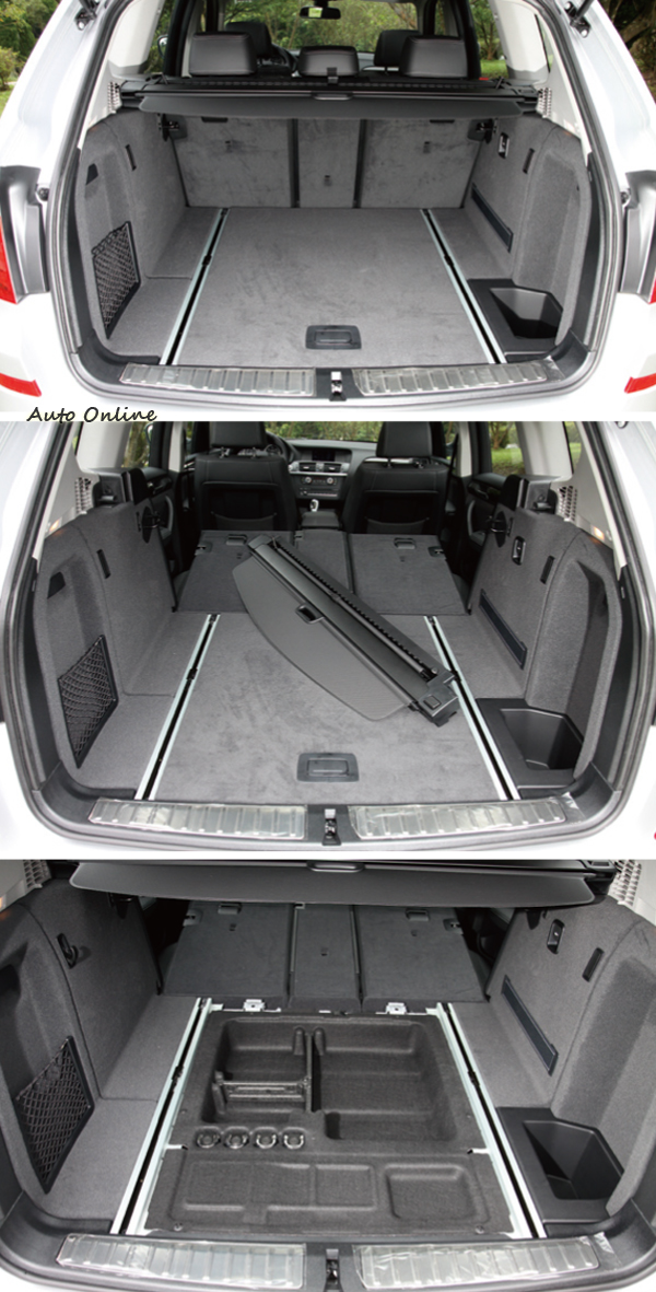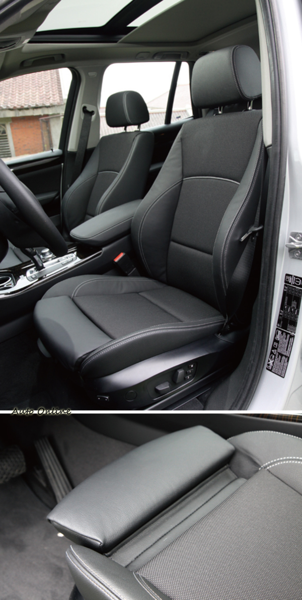 同級車中最大尺碼![]() BMW在內裝用料一點都不馬虎,大量運用軟質塑膠,並搭配押花高質感飾板,造就X3車室時尚優雅的座艙氛圍。中控台操作介面簡單乾淨,並沒有過多複雜的操作按鍵,最基本的冷氣、音響控制按鍵設置在中控台面板上。其它較為詳細的車輛控制統一歸納在iDrive選單裡,駕駛透過中央扶手前方的旋鈕搭配中控台上方的全彩螢幕,輕鬆找到想要調整會進入的選單內。比較可惜的是X3 xDrive20d為X3入門車型,並未配置原廠中文化衛星導航,消費者如果想要愛車能有原廠功能強大的衛星導航,可以加價選購。 ![]() ▲包覆性佳的前座座椅,有八向的電動調整以及電動調整身體的包覆性,另外,還可以手動改變大腿支撐性。![]() ▲2,810mm的軸距放眼望去是同級車之冠,使其後座腿部、手肘空間亮眼。![]() ▲置物空間絕對是購買SUV考量因素之一,後電動尾門啟閉系統增加使用上的方便性。![]() ▲X3後置物容積有550L,透過後座椅背40:20:40的傾倒功能,瞬間增加為1,600L。在後車箱底板下設有隱藏置物空間,並附有安全隔網以防物品晃動,也能利用地板上的滑軌來固定物品,擁有強大的RV機能。