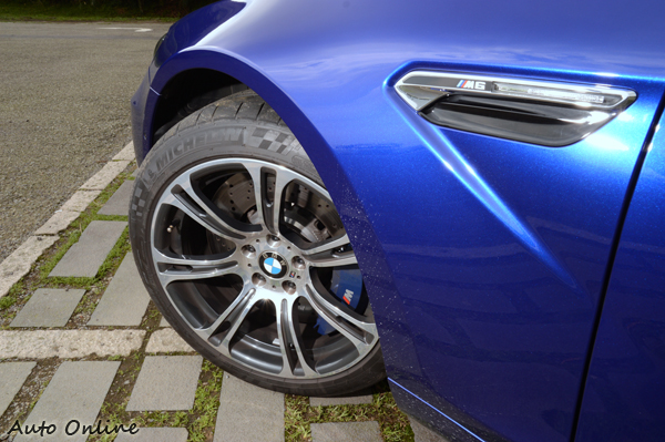 M系列特有外觀扮相![]() ▲車頭水箱護罩改為鋼琴烤漆黑色,加大下氣壩的開孔移除原有的霧燈,M6多了殺氣的跑格味道。全新底盤代號F13的BMW M6在外觀與一般版本的六系列有些許的差異,在優雅的車身線條下帶著內斂的霸氣。車頭水箱護罩改為鋼琴烤漆黑色,加大下氣壩的開孔移除原有的霧燈;車側在前葉子板上刻意冠上M6的銘牌,突顯出氣宇不凡的特殊感。 ![]() ▲尾燈導入BMW新家族特色,LED與導光條設計,增加BMW車系車尾辨識度。![]() ▲保桿造型也因為要融入左右雙出尾管做了修飾,下方有Diffuser設計。![]() ▲車頂材質為碳纖維用來減輕車重,中間部分有凹槽處理,可以降低風阻係數。![]() ▲鋁圈原廠搭載19吋雙肋式造型,消費者亦可選配到20吋規格。煞車系統前六活塞卡鉗,卡鉗的顏色可以依造消費者需求修改。![]() ▲M6沒有大型尾翼,後車廂尾門上有加裝小鴨尾,消費者如果覺得視覺戰鬥力不足,可以自行安裝改裝品品牌尾翼。