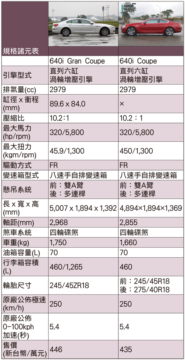 四個車門的大型跑車![]() 全新BMW 6系列Gran Coupe以現行5系列底盤所開發打造,車身長度尺寸來到5,007mm,比起6系列Coupe增加23mm,軸距從6系列Coupe的2,855mm加長到2,968mm,在車寬維持不變的情況下,車高從原本的1,369mm增加至1,392mm。拿來與5系列相比,雖然6系列Gran Coupe有更大的車身尺寸,但原廠賦予更低的車身高度,讓6系列Gran Coupe有著比5系列更流線的車身線條。光看車身尺碼,不難發現BMW想要6系列 Gran Coupe要同時兼顧車室空間實用性與跑車動感俐落的外觀造型;如果再將6系列Gran Coupe車身尺碼與同級距對手比較,BMW 6系列Gran Coupe不管是在車身尺寸或者軸距,都超越同級對手。 ![]() ▲6系列Gran Coupe車頭增加鍍鉻線條飾板,提升高貴氛圍,拉大與6系列Coupe的差異。![]() ▲前葉子板有整合鍍鉻飾條以及方向燈,如果能鑲上M-Power字樣,那就更加完美了!![]() ▲在後車門Hofmeister Kink窗框折角處,原廠鑲上Gran Coupe專屬字樣,搭配Coupe的無框窗車門,增添跑車該有的運動氣息。![]() ▲245/45ZR18的輪胎尺寸,在640i並沒有前後配,650i在輪胎尺寸上就會有前後不同寬度搭配。![]() ▲第三煞車燈設計在後擋風玻璃上方,提高夜晚的辨識度。![]() ▲640i Gran Coupe採雙邊單出排氣管設計,與霸氣的輪拱結合,再加上微微翹起的後廂蓋小鴨尾,增添不少雙門跑車的元素。
