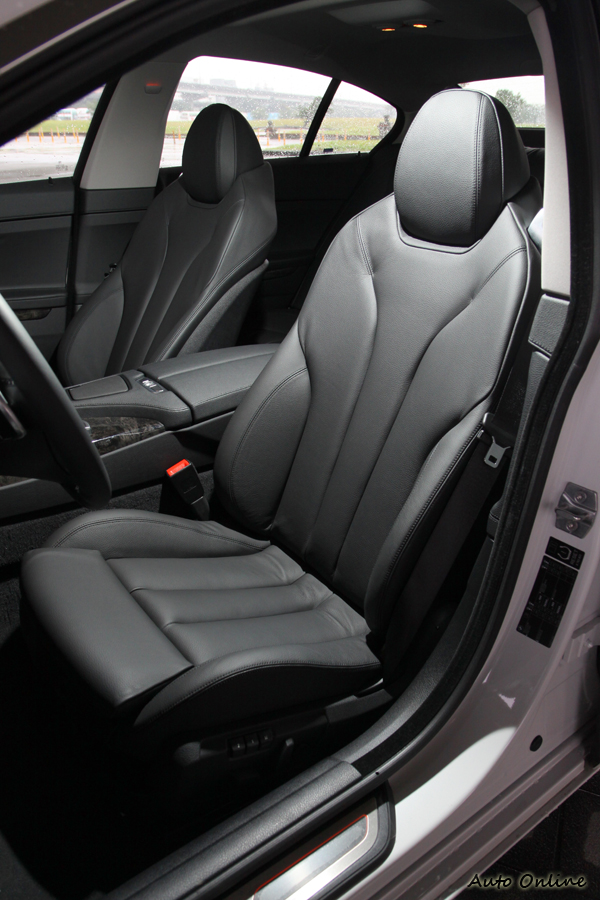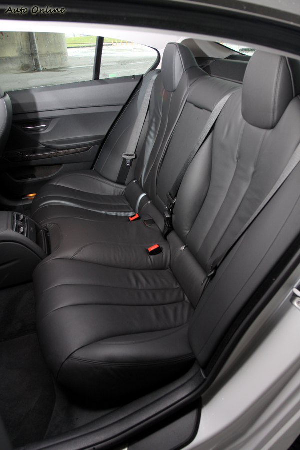 豪華、實用的車內空間![]() 進到6系列Gran Coupe車艙內,對內裝的配置一點都不陌生,因為中控台造型與現行6系列Coupe一模一樣。左右不對稱的中控台,包覆Dakota高檔真皮,並加上深色白楊木飾板,所營造出的豪華貴氣確實在5系列之上與7系列之下。不對稱的中控台設計以駕駛為導向,所有操控按鍵都偏向駕駛者方向;中控台可以分為兩大部分,上半部為10.2吋的全彩大螢幕,下方則為音響以及冷氣空調控制按鍵,操作上輕鬆就手。 ![]() ▲中控台上的10.2吋大螢幕,當駕駛選擇不同模式時,螢幕會出現改變提醒駕駛。![]() ▲iDrive旋鈕、冷氣音響旋鈕改用黑色陶瓷材質,排檔桿從鍍鉻改為鋼琴黑色烤漆,6系列Gran Coupe為標準配備,小地方改變有助於提升車內質感。![]() ▲640i Gran Coupe的跑車座椅造型整體感覺還是偏向舒適,符合人體工學的電動腰靠,坐一整天也不感疲態。![]() ▲刻意營造跑車化戰鬥內裝,安全帶被移到座椅椅背側面。![]() ▲軸距拉長到2,968mm,並增加兩個車門數,讓後座乘客可以很輕鬆自在上下車。![]() ▲原廠表示640i Gran Coupe是表準的五人座四門跑車,不過礙於後座馬鞍處與後座座椅相連,如果硬是要坐五人,坐在中間的乘客坐姿會很不雅觀。![]() ▲6系列Gran Coupe行李廂容積460L,後座椅背能6/4分離,分離之後行李廂空間可擴充至1,265L。