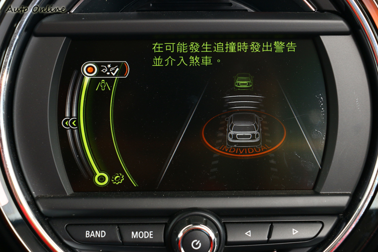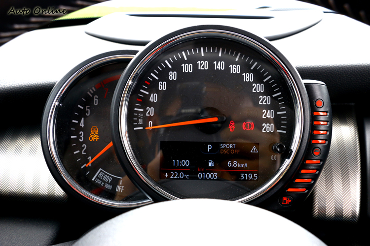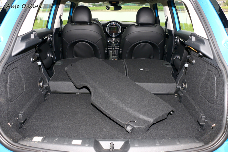 夜店般座艙氛圍![]() 進到車內,B柱之前車室與三門MINI大同小異,不得不再次強調MINI的設計元素永遠擺脫不開「圓」。 ![]() ▲MINI Visual Boost 6.5吋全彩螢幕,透過排檔後方旋鈕操作使用。![]() ▲時速與轉速移至駕駛者前方,方便閱讀。![]() ▲主動式定速控制器含碰撞預警系統為選配。![]() ▲MINI Controller操作上類似BMW iDrive系統。![]() ▲USB、AUX IN是現今車款標準配備。![]() ▲抬頭顯示器列為選配。![]() ▲MINI Cooper S 5D配置兩張賽車座椅,試駕車有選配真皮內裝。![]() ▲增長的軸距創造出後座更寬敞空間。![]() ▲行李廂部分,比起三門多出67L,最大有 941L置物容積。