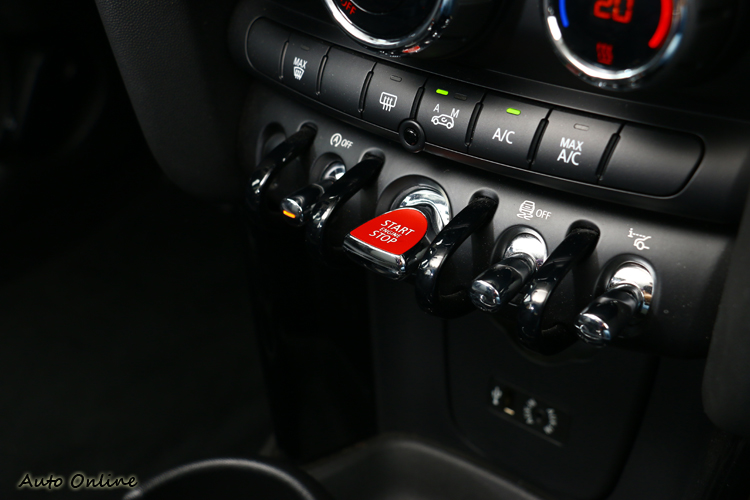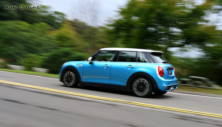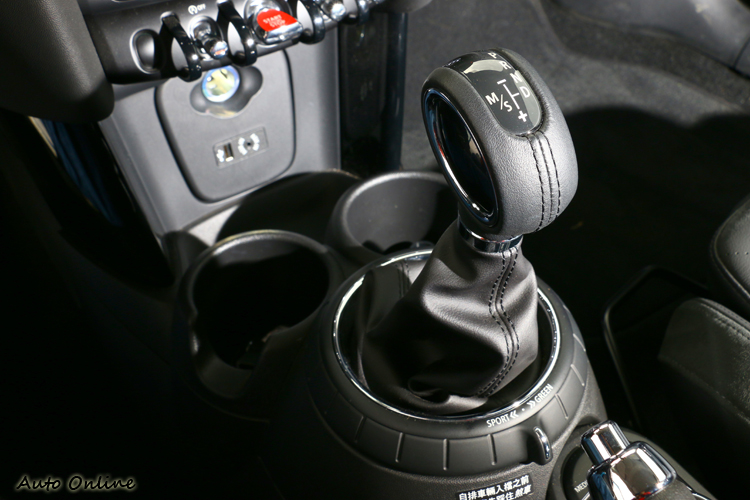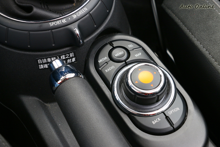 增加實用 不減樂趣![]() ▲這具引擎的淺力無窮,經過John Cooper Works升級也能成為猛獸。手裡握著鑰匙,按下中控台下方顯眼紅色的引擎啟動按鈕(免鑰匙晶片控制系統為選配),喚起前方2.0L直列四缸渦輪增壓引擎,同時後方排氣管傳出低沉的獅吼聲浪。 ![]() ▲火紅的引擎啟動按鈕增添車內熱血氛圍。![]() ▲六速手自排變速系統,排檔桿比三門版本短。![]() ▲原廠刻意的調校下,非常接近三門車型的動態反應。MINI Cooper S 5D在行車模式上有Sport(運動)、Mid(一般)及Green(節能)三種,市區行駛時Mid符合絕大多數消費者對車的要求,渦輪增壓引擎不會給人難以駕馭感,順順的加速、正常時機換檔,就像溫馴的野獸容易馴服。Green模式提供最大節能狀態,如果駕駛有關閉引擎自動啟閉功能會再度打開,冷氣、油門、變速箱都會盡可能達到省油狀態,這時你會覺得MINI Cooper S 5D變得呆呆的,不要以為車壞掉了,因為它正在節省你的荷包。當然Sport是我最喜歡開的模式,進入Sport模式,油門反應靈敏、變速箱延遲換檔,動力隨傳隨到,山中過彎行雲流水,就如螢幕上顯現「最大Gokart體驗」一樣貼切。