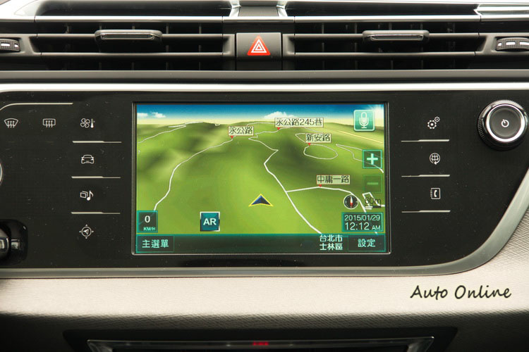 進入車室內,首先吸引人目光的就是中控台上下兩層那一大一小的顯示幕,上層的12.3吋顯示幕專門負責「顯示」,所以具HD高畫質全彩顯示功能,下層7吋彩色螢幕是負責「操作」,所以是觸控螢幕。在7吋螢幕上可以觸控操作音響、通訊、行車資訊、系統設定、與導航等。導航系統使用的是Papago的中文圖資,未來CITROEN其他車款在國內銷售若有配備導航,也都會配備這套系統。
