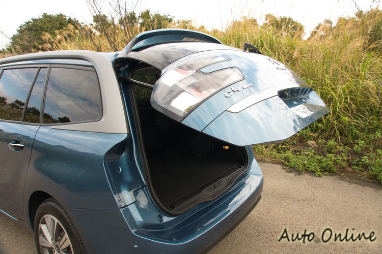 CITROEN的法式創意設計展現在車身側面,一道銀色飾條從A柱沿著車頂一路劃到車尾再折回至車尾小窗的下緣。而在車身鈑件上也有著有如呼應車頭「凹」字形線條般的造型摺線,增添一些肌肉桿的視覺又不會顯得太過誇張複雜。車尾最有看頭的莫過於很有3D立體感的LED尾燈造型,讓人印象深刻,在路上應該很容易辨認。有趣的是其「ㄈ」字的形狀,既像「C」也很像同屬PSA集團的PEUGEOT旗下車款在內外裝細部常用的「獅爪」形狀元素。配備電動啟閉尾門對於行李的取放也更為方便。