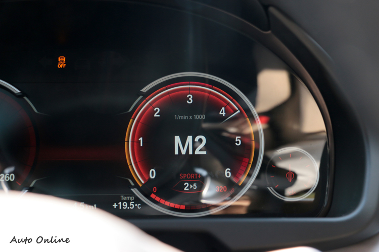 ▲右邊轉速表,當駕駛切換到手動模式,外圈還有超轉燈顯示。