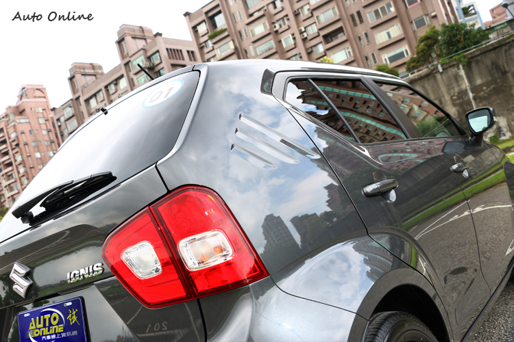 獨特的外型設計感![]() 從外型來看,Suzuki Ignis車身尺寸長寬高分別為3700mm、1660mm、1595mm,軸距則為2435mm,放眼望去這類的車型在台灣真的不多,大概只有Smart for four與較貴的MINI符合。 ![]() ▲ Ignis有著深邃的五官,頭燈與水箱護罩融為一體,再利用鍍鉻飾條來加強記憶性。![]() ▲兩個重要經典元素,一個是在引擎蓋兩側的進氣孔,另一個則是在C柱位置的三條摺線。![]() ▲鋁圈配置到16吋規格,在不影響油耗前提下胎面只用到175/60R16寬度。