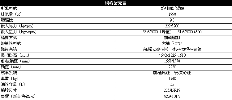▲與日本東名引擎合作開發的1.8升渦輪引擎,最大馬力來到220匹。