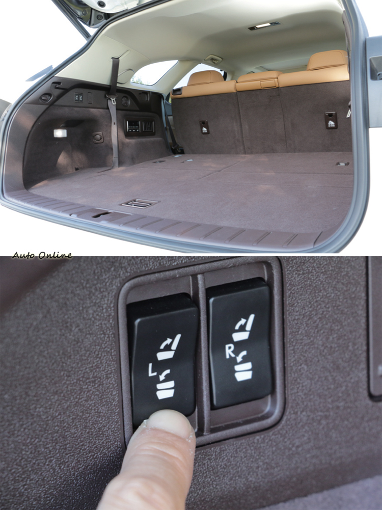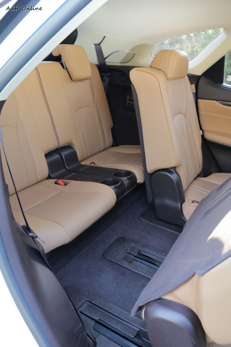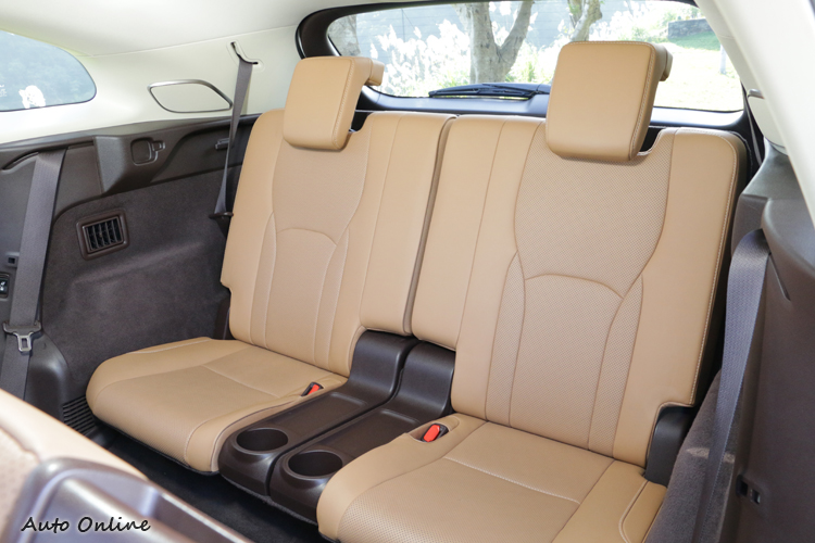 ![]() ▲平坦的地板同時也為內部空間創造寬敞舒適的乘坐體驗。RX350L的精華在於它的座椅設計,前座保有對於駕駛者和乘客的尊榮禮遇,像是10向電調座椅、四向腰靠扶力電動調整、通風功能和3組記憶都是標配。 ![]() ▲通過第二排椅背的前傾挪動,進出第三排也可以很輕鬆。![]() ▲專屬杯座、空調出風口之外,第三排也有基本的側邊扶手可用。![]() ▲基本行李空間若是不足,簡單動動手指就能完成擴充。![]() ▲備胎藏於車底下,同時採用的是隱藏式排氣管的設計。