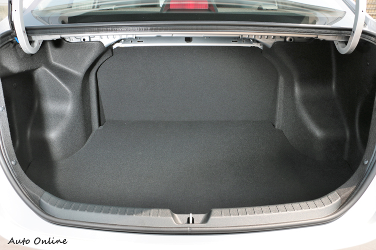 ![]() ▲軸距達到2550mm,以我180cm身高,膝部能有一個拳頭左有的空間,頭部大概只有半個拳頭左右。![]() ▲後車廂容積達到473公升,可惜後座椅背無法6/4分離傾倒。