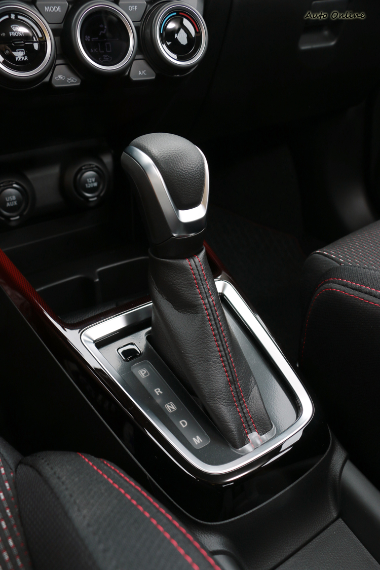 很可惜大家關注的手排車型會不會導入,答案是「No」,變速箱為傳統六速自排系統,配有手動換檔功能,齒比的搭配稍稍與一般Swift不同,畢竟動力改變後,必須調整來符合引擎輸出的銜接表現。實際操作下,變速箱的保護機制有點過於干涉,只要降到後的轉速會過高,電腦就會限制住不讓你降檔;當轉速到達紅線未升檔,電腦也會幫你升檔,電腦的介入就是希望增加變速箱妥善率,保護它的運作提高壽命。