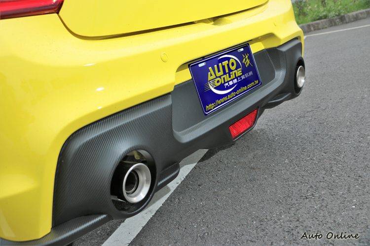 ▲黑色塑料類碳纖維材質妝點出Diffuser樣式,左右單出排氣管很有運動風格。