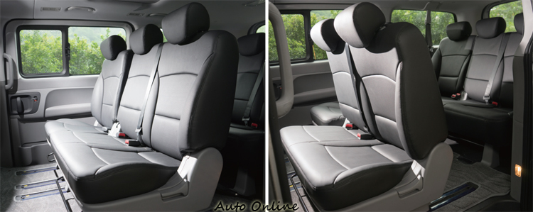 6:4分離第二排座椅可以前後滑移,三排八張座椅的椅背都可以做大角度的傾斜調整,想打瞌睡的話椅背放低就可以睡得較舒服。