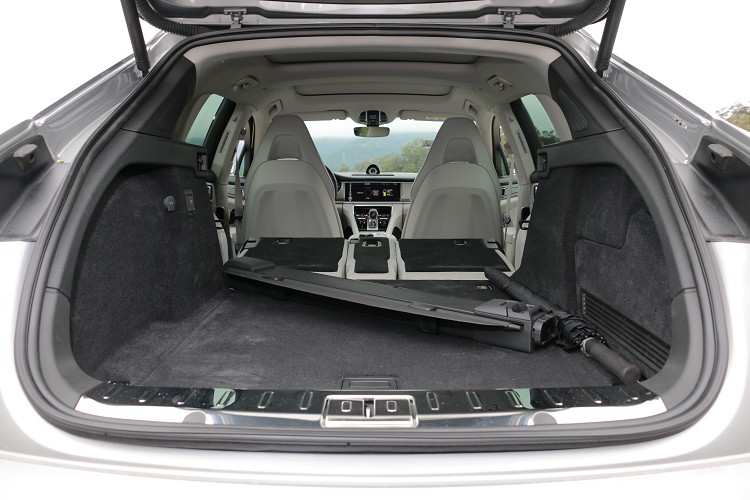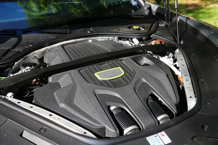 電動馬達的電力來自於行李廂底板下的液冷式鋰離子電池,容量達到14kwh。這顆高壓電池經由 230-V、10-A 的線路充電僅需 5.8 小時即可完成充電。如果車主選配 7.2 kw車載充電器和 230-V、32-A 充電線來取代 Panamera 標準配備的 3.6kW 充電器,則充電時間僅需 3.6 小時。安裝於後行李下方的電池多少會影響到置物容積,一般動力的Sport Turismo後行李廂空間為520公升,但Sport Turismo 4 E-Hybrid車型則縮減到445公升,當然後座椅背是可以傾倒換取置物容積,不過就會縮減到車室人員乘載空間。