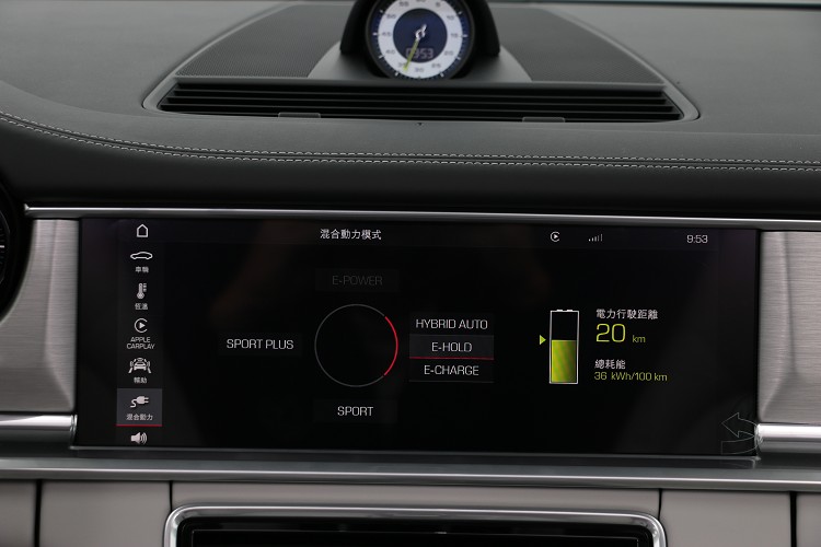 而我們這次所試駕的版本為Panamera Sport Turismo 4 E-Hybrid,是一輛油電混合版本,引擎動力搭載的是一具2.9升V型六缸渦輪增壓系統,內燃機部分可創造出330匹最大馬力與45.88公斤米最大扭力。電動馬達部分可輸出136匹最大馬力與40.78公斤米最大扭力,使整體綜效馬力達到462匹與71.38公斤米最大扭力。純電動模式下可行駛51公里,最高速度可達到140公里/小時,當引擎與馬達合力工作下,配合八速PDK雙離合器自手排,最高速度可達到275公里/小時,靜止加速到百公里約莫在5秒左右。