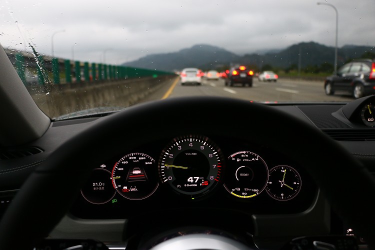 從高速公路切進山路,另一項令我大驚的就是它的靈活度,很難想像軸距2,950mm、車長5,049mm的龐然大物卻能有敏捷動態反應,車頭前輪轉向直接不拖泥帶水,車尾在駕駛者做出反應後都能快速跟上,選配的後軸轉向系統輔助是一大功臣。除此之外,保時捷主動式懸載調整系統(PASM)大幅降低過彎時的側傾,能夠依據當前路面狀況與駕馭風格,主動且持續地調整每只車輪的避震器阻尼力道,提高過彎穩定性且同時帶來舒適性。舒適性的最好證明就是坐在副駕駛座的老婆,沒有因為你在山路上狂胚而對你口出惡言,就代表著PASM的功力相當了得。