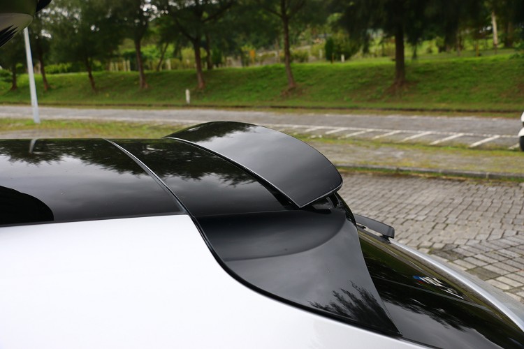 ▲車尾上方的尾翼會隨著車速自動開啟,駕駛者也能從按鍵上獨立控制。