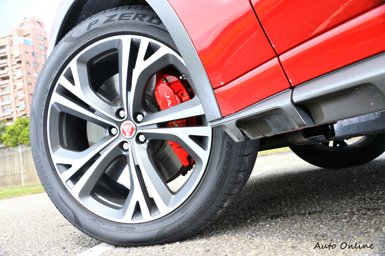 除了加速表現之外,山路上的動態反應也令我詫異,龐然大物居然能有如此靈活的表現,北宜山道上進彎前的減速、通過彎頂點的加速,一氣呵成毫不拖泥帶水,尤其是出彎後的在加速,感覺到強勁動力不斷推送。彎中懸吊支撐性還算足夠,但依舊會受到車重影響,重心轉移的瞬間沒有那麼流暢,必須遷就一下這龐大的身軀。另外,煞車在進彎前的負荷很重,用盡全力跑了幾趟會有熱衰竭的現象,之後就會較難精準的控制煞車點,需要等它冷卻之後才會恢復原有力道。Jaguar自主開發的智慧型四輪傳動控制系統,在山路上幫助很大,電腦不斷的調整前後動力分配達到最佳循跡性,有必要的時候還能將強大的動力傳遞於後輪,減輕前輪負荷,大大增加山路上的駕馭樂趣。