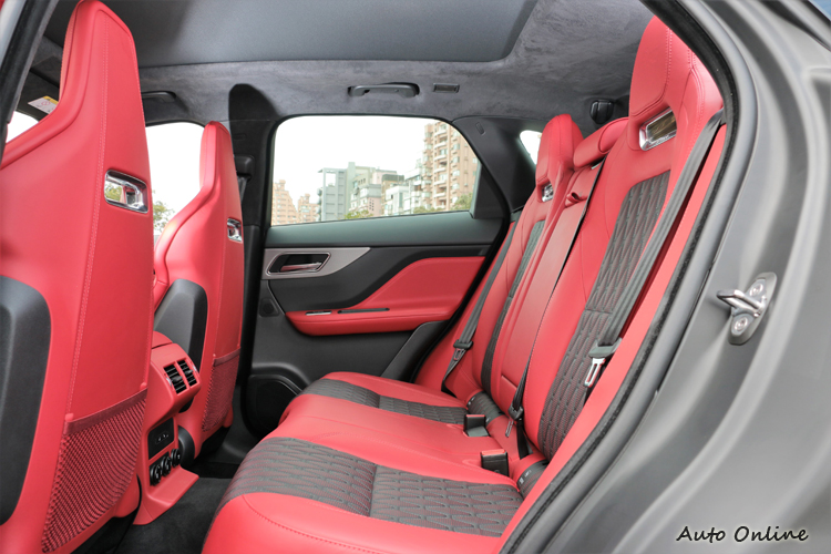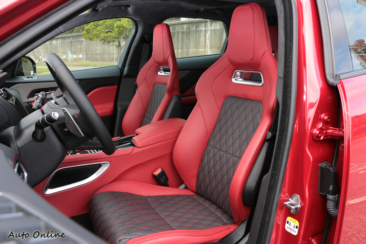 ▲火紅又帶有菱格紋的雙前跑車座椅,包覆性的表現帶來最熱血運動氛圍。