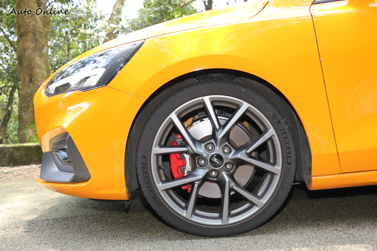 ![]() 別說Focus ST太平凡,它還是有些專屬配備,像是蜂巢水箱罩和上面的銘牌,19吋胎、大尺寸碟盤,大型擾流翼和車尾的雙出排氣管。 ![]() ▲蜂巢水箱罩和ST銘牌是車頭少數足以辨識身份的地方。![]() ▲車尾上方裝有擾流翼,鯊魚天線和飾板採用黑色烤漆處理。![]() ▲煞車系統經過升級,並且搭載專屬配方的PS4S運動車胎。