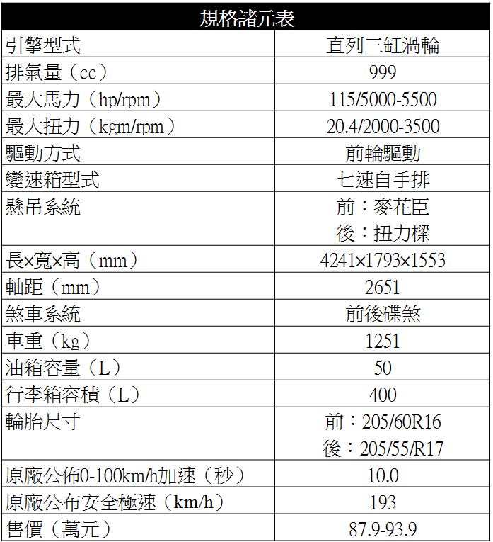 ![]() 1.0 TSI的動力輸出數據為115hp/5000-5500rpm最大馬力與20.4kgm/2000-3500rpm最大扭力,變速箱與1.5 TSI車型一樣是搭配七速雙離合器自手排變速系統。