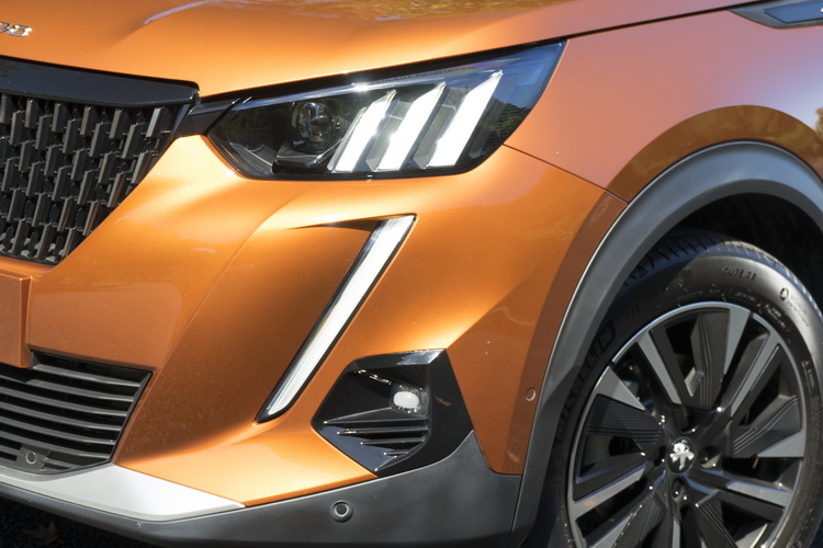 外觀上與過去相比,從車身輪廓就有著極大的變化,過去的2008在想創造正統SUV的高挑空間和外型考量之下,車高有著明顯的凸顯。而新2008就像把上代2008向前/後拉長一樣,你可以發現引擎蓋角度更為水平、前擋風玻璃更傾斜、車頂線條也更長、垂直粗大的D柱也消失,整體變得非常修長而不傳統(的SUV設計格局),如果LAND ROVER要出一台小型車,車身輪廓大概就會接近這個樣子。 來到車頭,新的水箱罩面積比過去更大,內部縱向立體鍍鉻格柵也很搶眼(現在許多車廠在水箱罩造型設計所下的功夫,早已不是「格柵」一詞能夠簡單概括的),而且縱向紋路也與頭燈內的「獅爪」相呼應,加上大氣的獅頭廠徽,車頭的氣勢就有出現。頭燈部分PEUGEOT一向喜歡把獅爪的意象帶入設計之中來凸顯品牌,不過以往都是在燈殼部分。而這次隨者大改款換上全LED燈組之下,除了以三道直線光條來象徵獅爪(尾燈也是如此)外,下方還多了一道長長的「獠牙」,讓這個設計傳統又有了新的風貌。