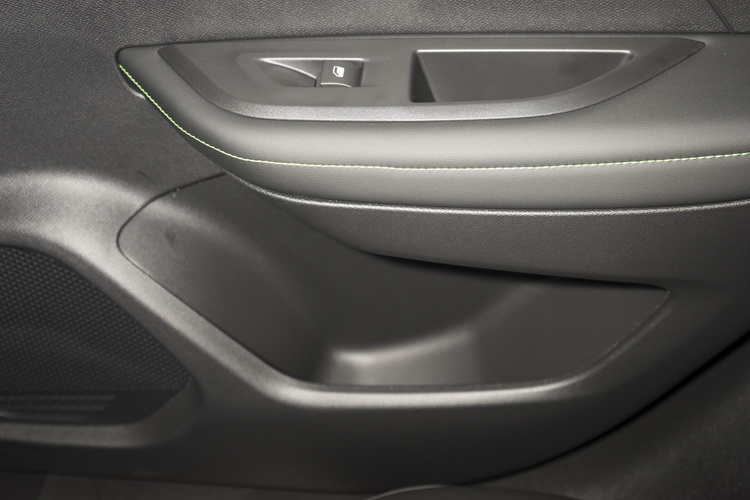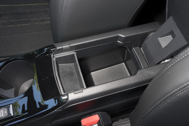 而在舒適與便利上,中控台下方的按壓掀蓋置物盒具有Qi手機無線充電功能下掀的蓋子也有支撐設計讓車主立放手機(建議橫置就好,直置比較不適合);從前方控台到車門飾板的下緣有氣氛照明的光條,可以在7吋中控螢幕上切換顏色,共有8色可選,更能凸顯車室的科技感;電動天窗的遮陽簾要手動操作,天窗本身只能開一半的面積。